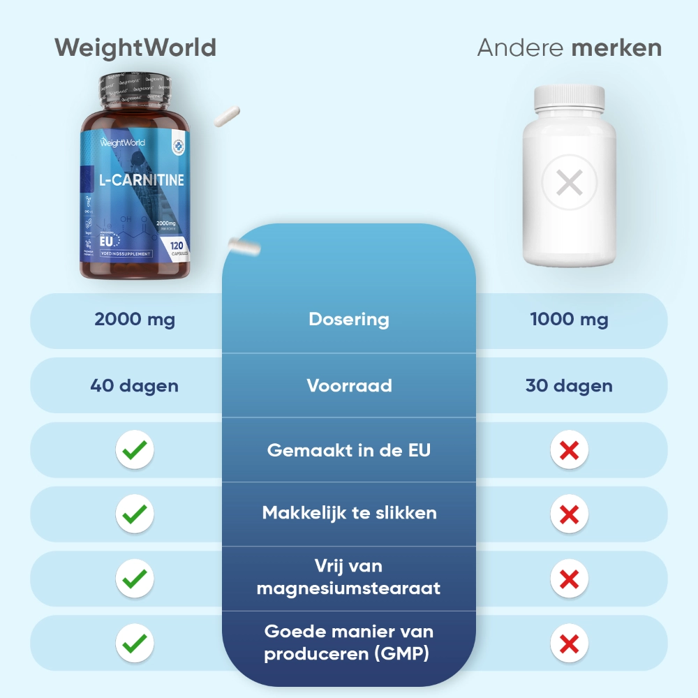 - Sterke dosering van 2000 mg L-carnitine per portie