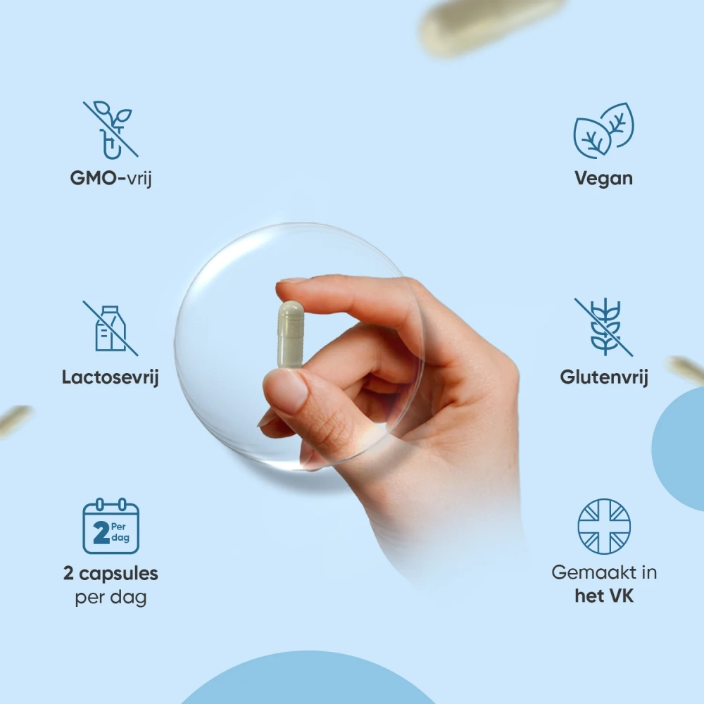 Neem dagelijks 2 capsules met een vol glas water, bij voorkeur bij een maaltijd.