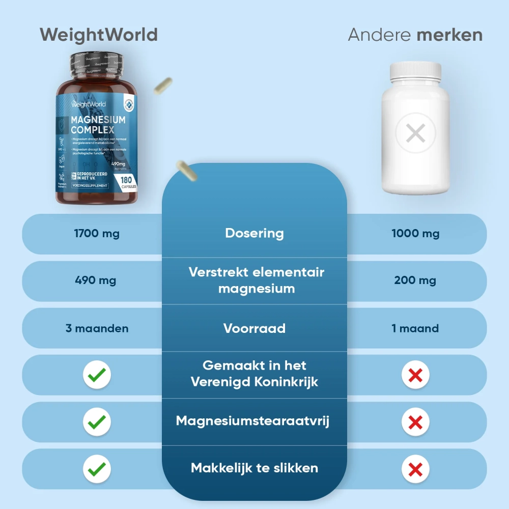 - 400mg elementair magnesium per portie