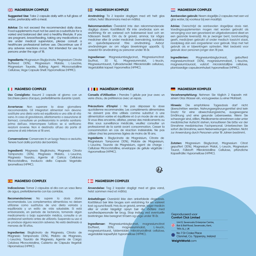 - Bevat magnesium glycinaat, tauraat, malaat en citraat